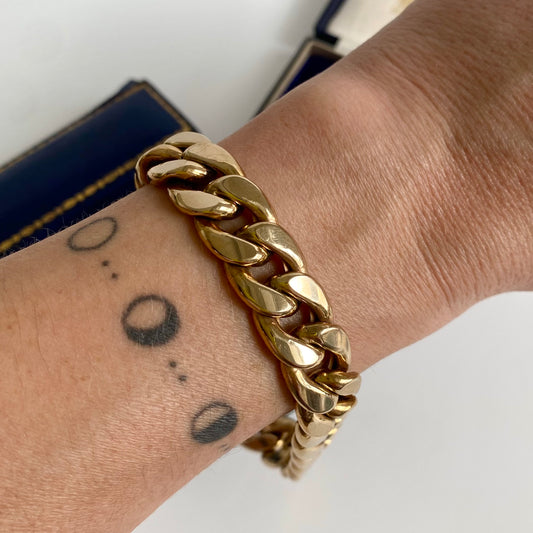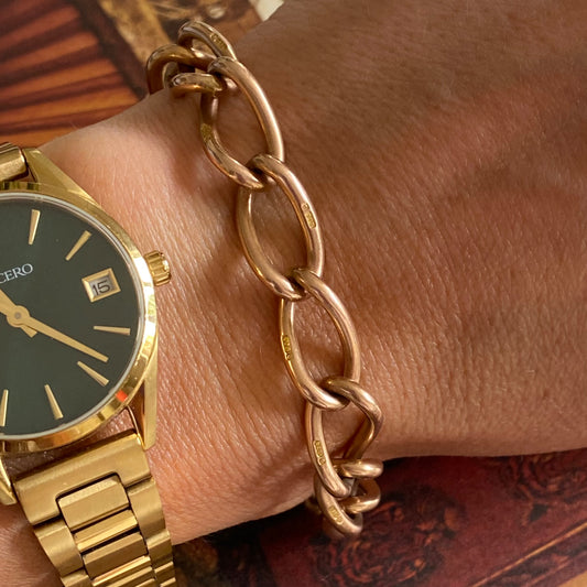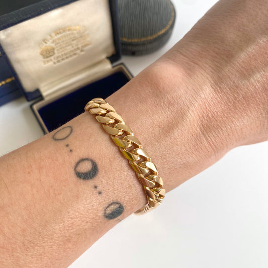 Solid 9ct Gold Vintage Curb Bracelet | 7.5" | 9.5mm