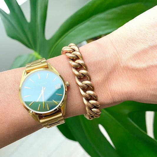 Fantastic Chunky Rosey Antique 9ct Gold Curb Bracelet with Heart Padlock | 7.5" | 11mm