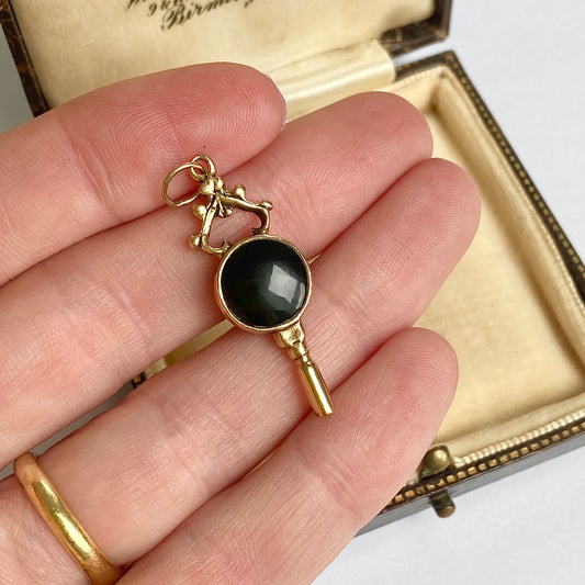 9ct Gold Mother of Pearl (MOP) & Onyx Watch Key