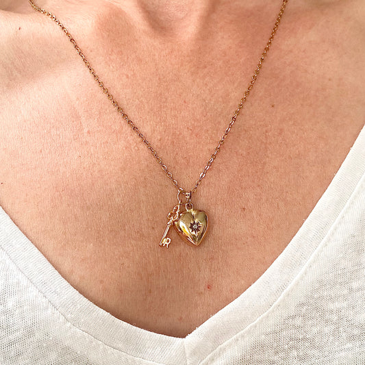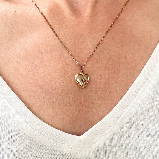 Antique 9ct Gold and Diamond Puffy Heart Pendant