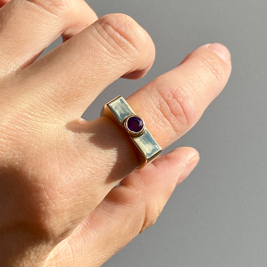9ct Gold and Amethyst Solitaire Ring | Size UK L.5