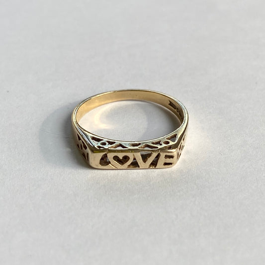 9ct Gold Ornate 'Love' Ring | Size UK M.5