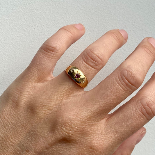 Antique 18ct Ruby & Diamond Starburst Ring | Chester 1913 | Size UK L