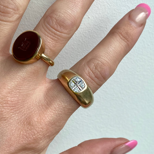Fantastic Vintage 9ct Gold and Diamond Domed Ring | Size UK T.75