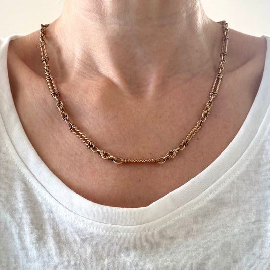 Antique Solid 9ct Rosey Gold Fancy Twist Link Chain with Dog Clip Clasp | 20" | 29.6g