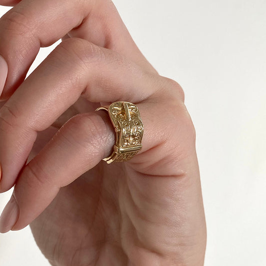 Chunky 9ct Gold Vintage Buckle Ring | Small Size UK G.25/F