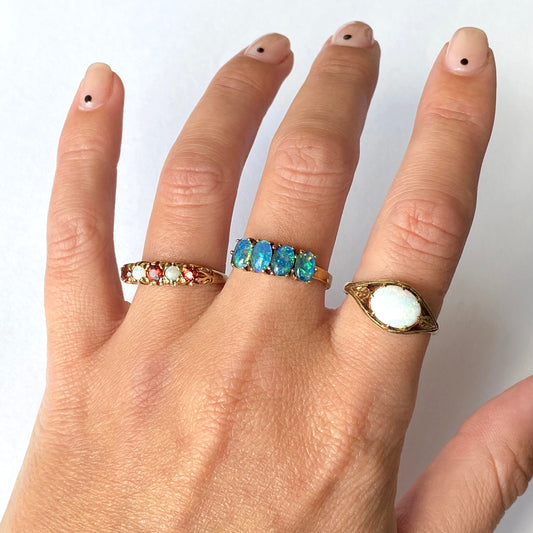 Beautiful 9ct Gold, Opal and Garnet Ring | Size M.5