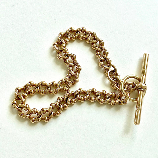 Fantastic Vintage 9ct Gold Roller Link Bracelet with T Bar Clasp | 8.3" | 24.4g