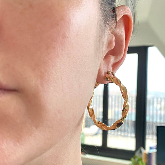 Fab Vintage Retro 9ct Gold Twist Hoops