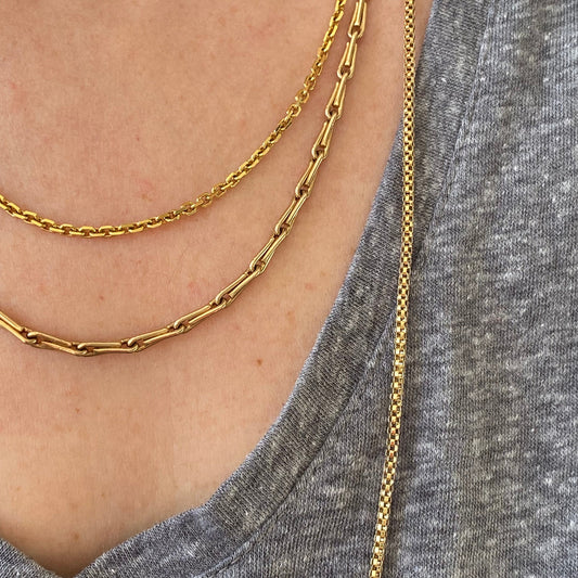 Vintage 9ct Gold Faceted Oval Link Chain (Biker Chain) | 16" | 15.4g