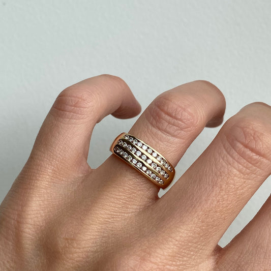 Sparkly 9ct Gold and Triple Row Channel Set Diamonds | Size UK J.5