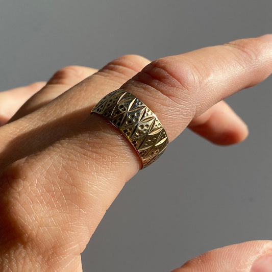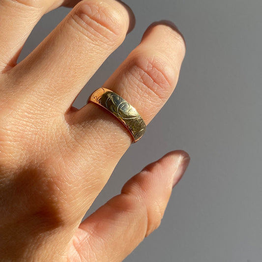 9ct Gold Patterned Cigar Band | Size UK N (fits like L)