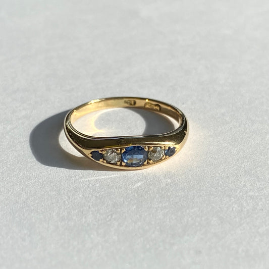 18ct Gold, Diamond and Sapphire Boat Ring | Size UK M.75