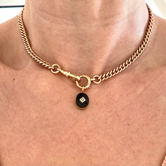 Lovely Antique 9ct Gold, Onyx & Diamond Pendant